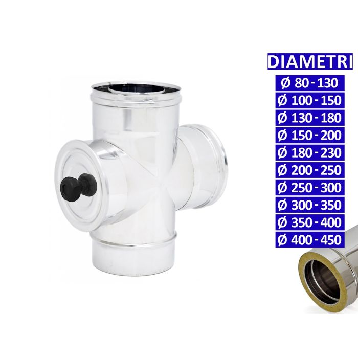 Descrizione / ALLINOX Raccordo a Tee Ispezionabile Doppia Parete Canna Fumaria Acciaio Inox