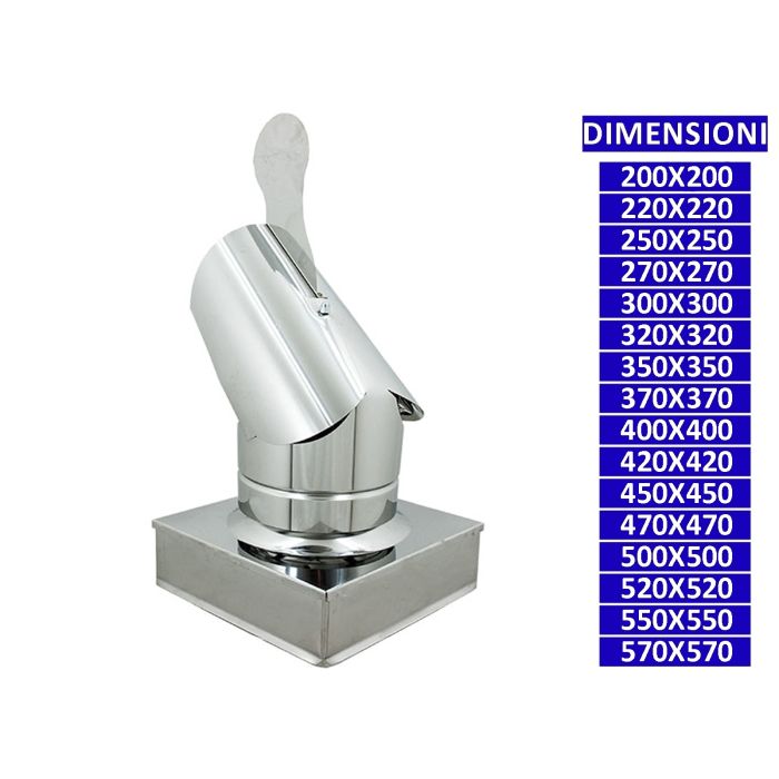 ALLINOX Terminale Gallo Acciaio Inox Canna Fumaria Comignolo Base Quadra
