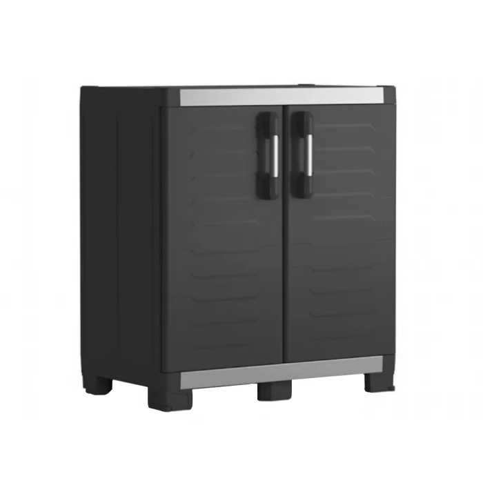 Armadio salvaspazio Keter in versione bassa adatto alla conservazione di oggetti ingombranti e macchine pesanti in garage, officine, rispostigli.