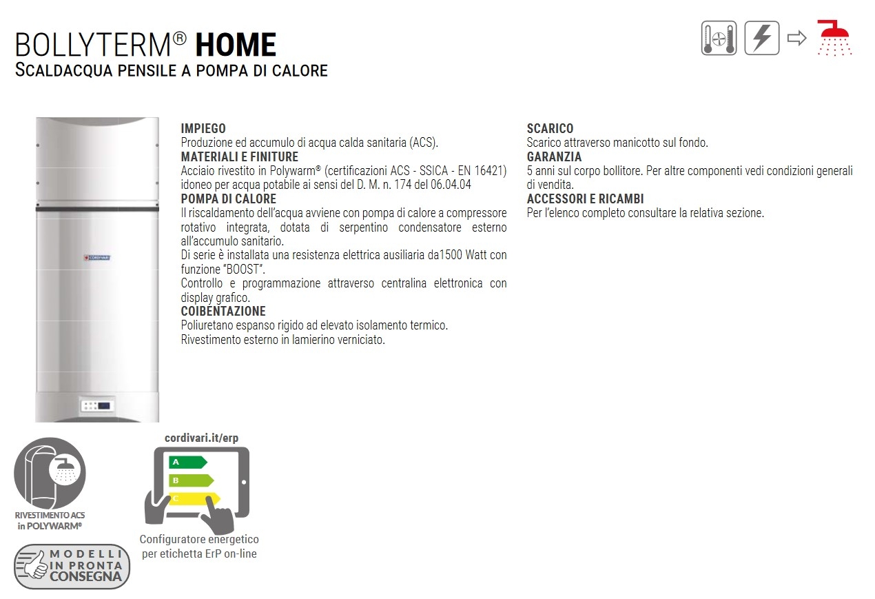 Bollitore Pensile Pompa di Calore CORDIVARI 3180162330050 BOLLYTERM HOME 80 LT SCALDACQUA