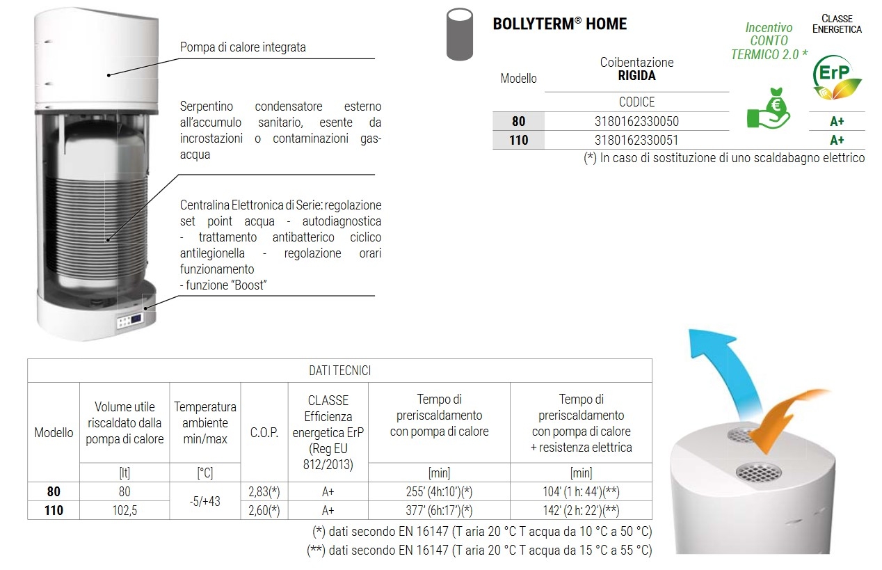 Descrizione / Bollitore Pensile Pompa di Calore CORDIVARI 3180162330050 BOLLYTERM HOME 80 LT SCALDACQUA