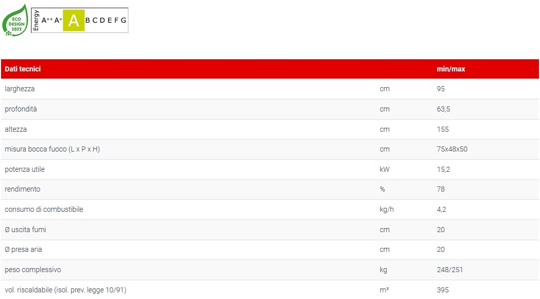 Camino a Legna 15,2 Kw ITALIANA CAMINI IC TEKNO 1 Focolare Naturale