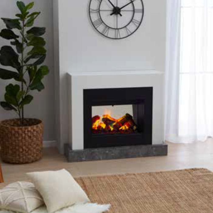 Camino elettrico ad acqua completo di cornice di rivestimento in MDF.