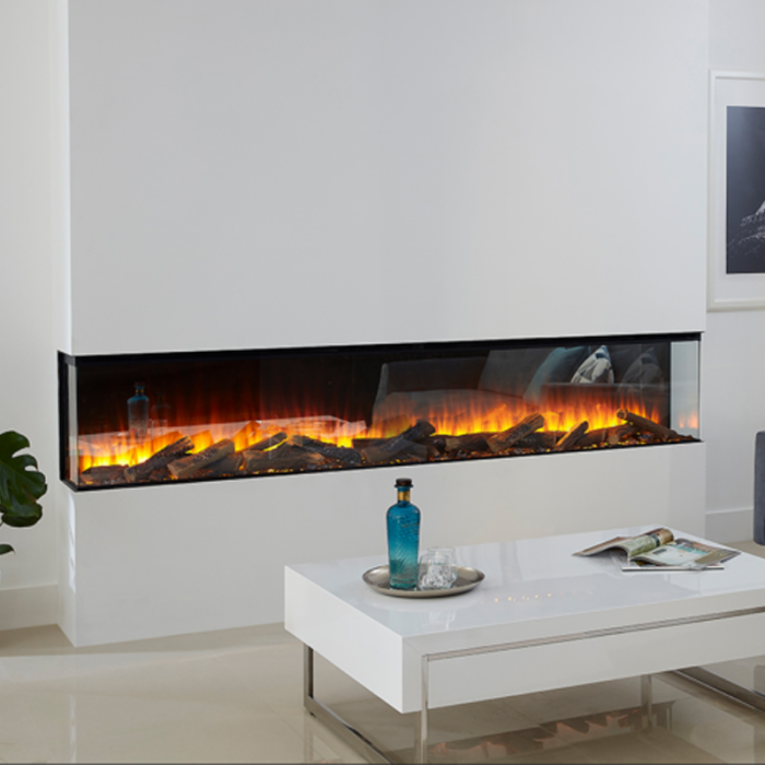 Un caminetto elettrico con vetro, di incredibile qualità, versione più lunga di ALISA 160. Dotato di funzione riscaldamento, si può installare indifferentemente con un solo vetro frontale, con un lato aperto, oppure trifacciale. Programmabile con telecomando di serie, la qualità della legna e della fiamma non hanno paragoni sul mercato dei caminetti elettrici vetrati.