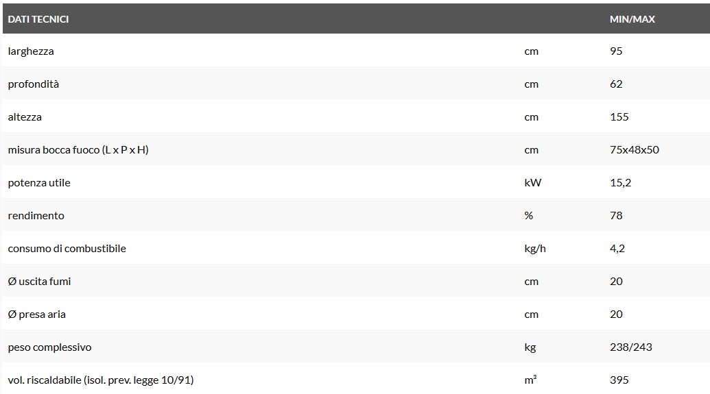 Camino a Legna 15,2 Kw EK63 FIREK 3 Focolare Canalizzabile