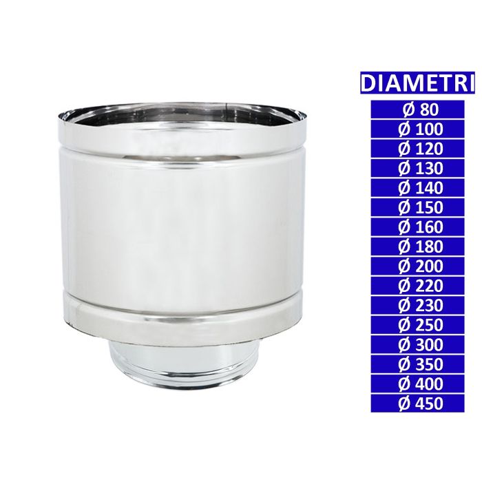 ALLINOX Terminale a Botte Acciaio Inox Canna Fumaria Comignolo Femmina Base Tonda