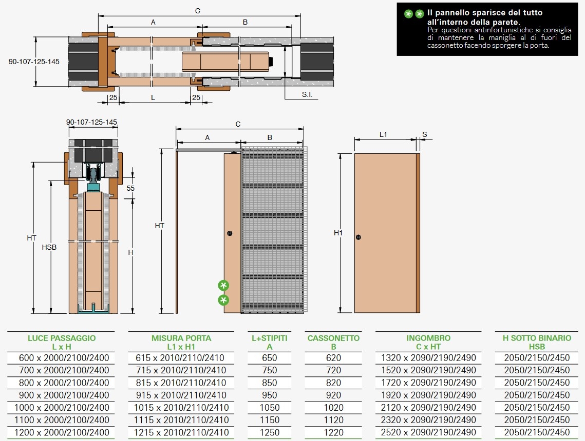Descrizione / Controtelaio 900x100x2100 ERMETIKA EVOLUTION Per Porta Scorrevole Con Stipiti