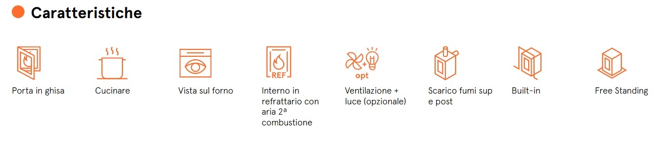 Caratterizzate da porte in ghisa, eleganti maniglie e corrimano in acciaio, camera di combustione con interno in refrattario.