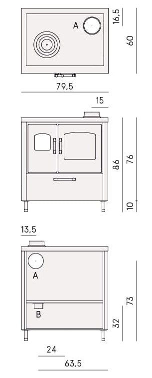 Descrizione / Cucina A Legna 7,5 Kw CADEL SMART 80 In Varie Colorazioni