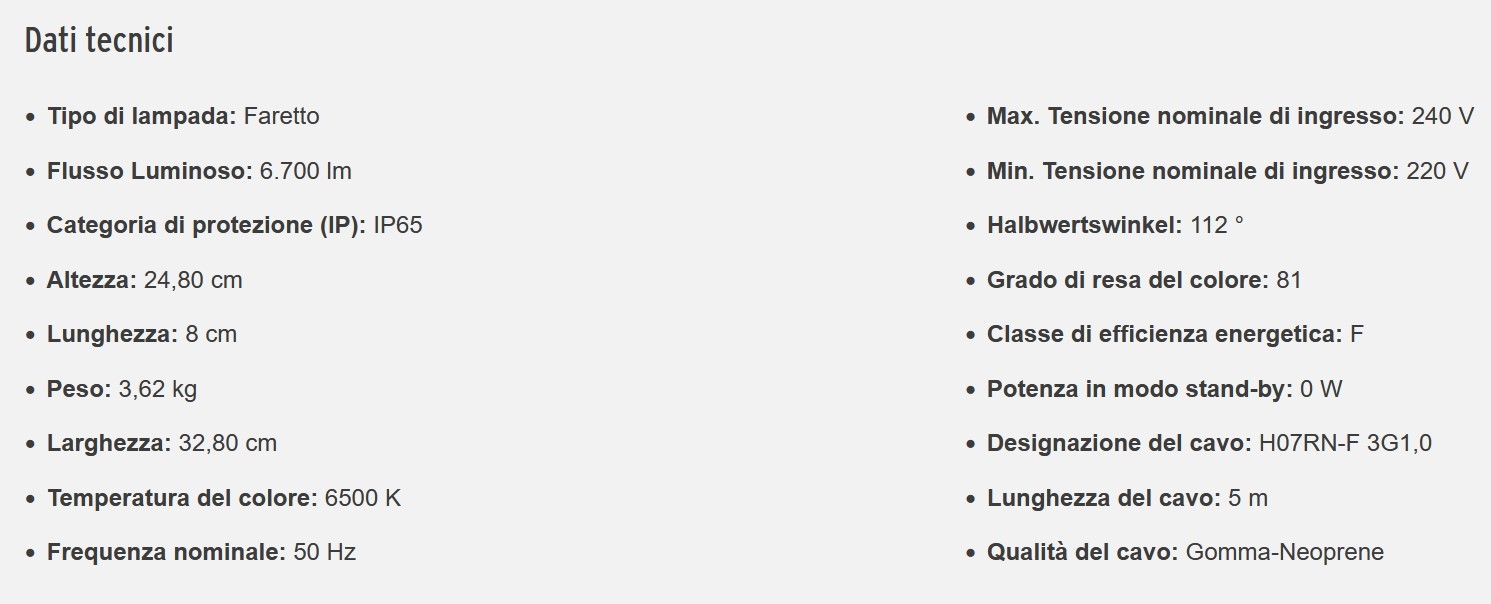 - Installazione facile grazie al cavo di 5 metri H07RN-F 3G1.0.