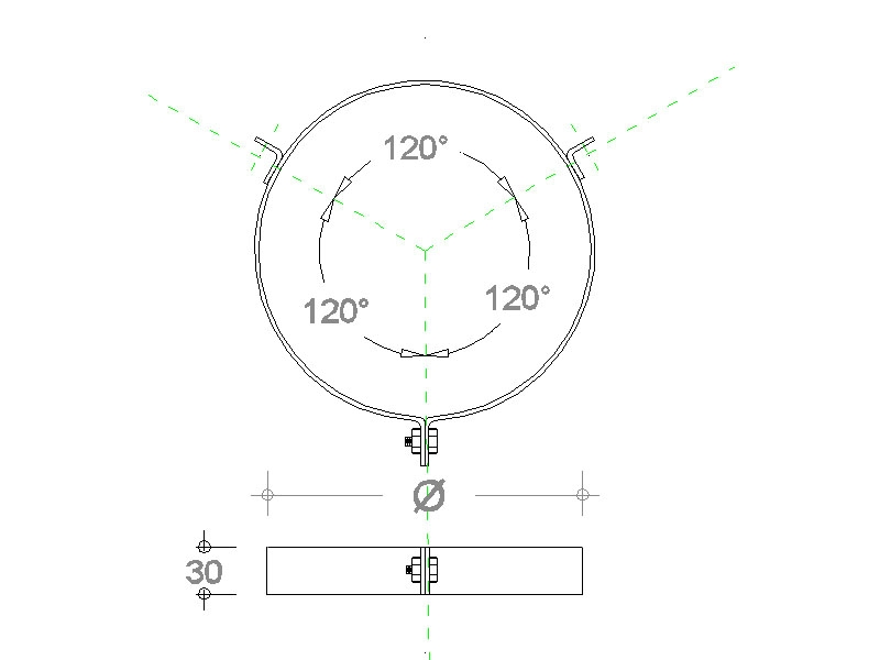 Elementi di ancoraggio per tratti finali di Sistemi Camino emergenti dal tetto. E' dotato di 3 punti di ancoraggio, tra loro dislocati a 120°, che forniscono l'attacco di cavi tiranti (non in dotazione) da ancorare a tre punti fissi affidabili.