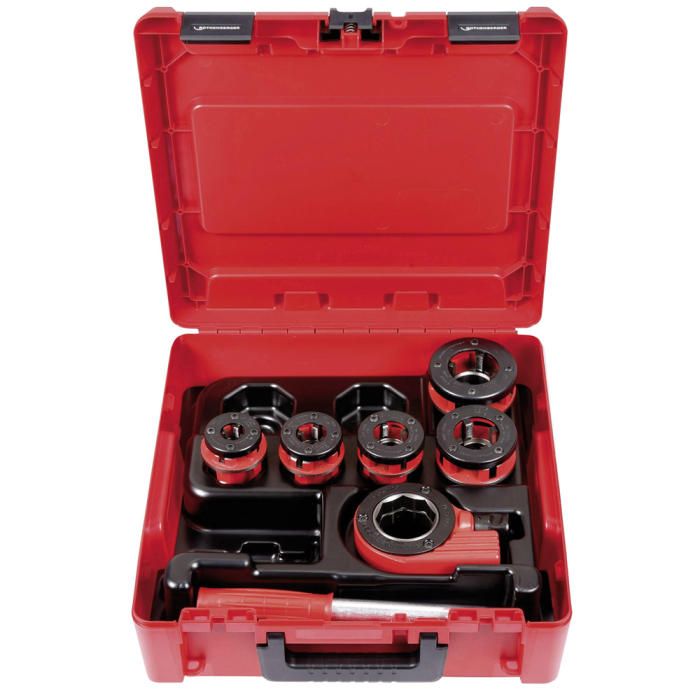 | Testo | SUPERCUT Set, cricco per filettare, BSPT R, 3/8"-1/2"-3/4"-1"-1.1/4" in valigetta |