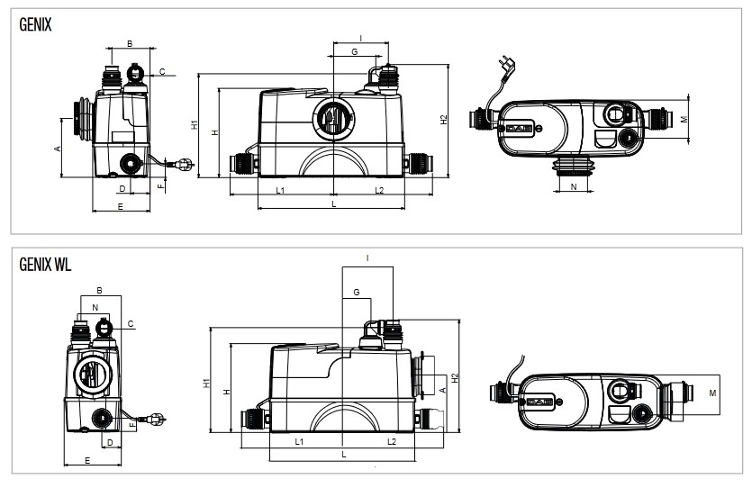 GENIX è indispensabile nei casi in cui le acque di rifiuto di wc, docce, lavabi, bidet o elettrodomestici non possano essere espulse per gravità.