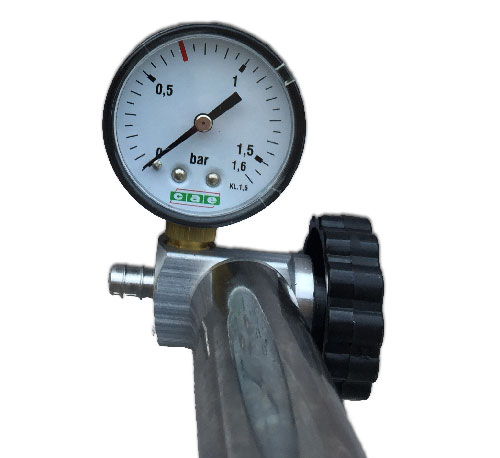 Utilizzato per il gonfiaggio della camera d'aria dei galleggianti VINO OLIO. In acciaio INOX per garantire la durata nel tempo e ampio manometro.