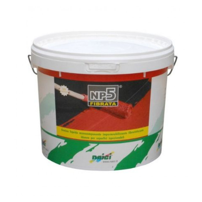 NP5 FIBRATA è una guaina liquida monocomponente, fibrorinforzata, disponibile in vari colori, che forma una membrana elastica ed impermeabile.