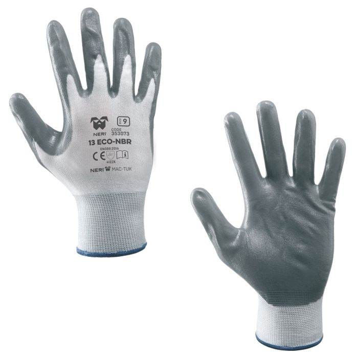 - Palmo ricoperto in nitrile per una valida protezione in presenza di liquidi, oli e/o grassi