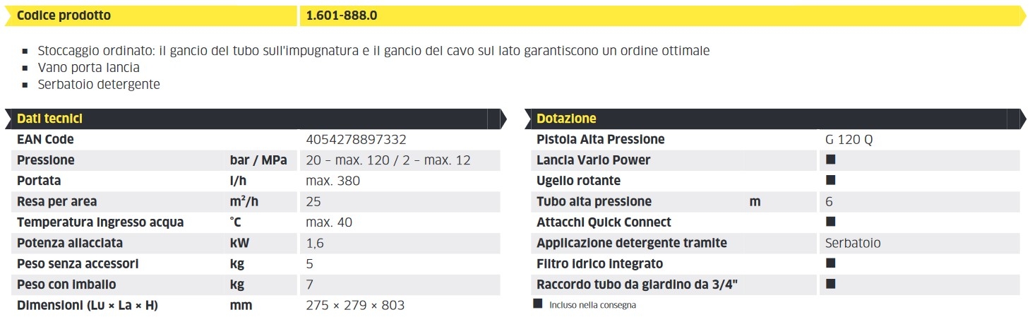 Descrizione / Idropulitrice KARCHER K3 Alta Pressione 120 Bar Con Serbatoio