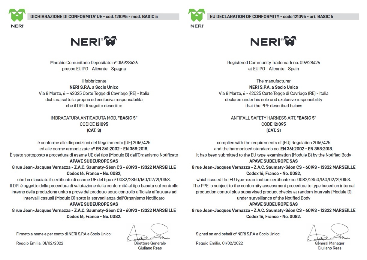 Imbracatura Lavoro Anticaduta NERI BASIC 5 Con Att. Dorsale e Sternale