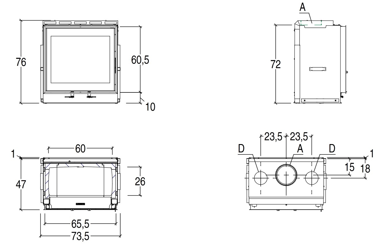 Descrizione / Inserto a Legna 11 Kw PIAZZETTA MC 65/60 Camino Compatto