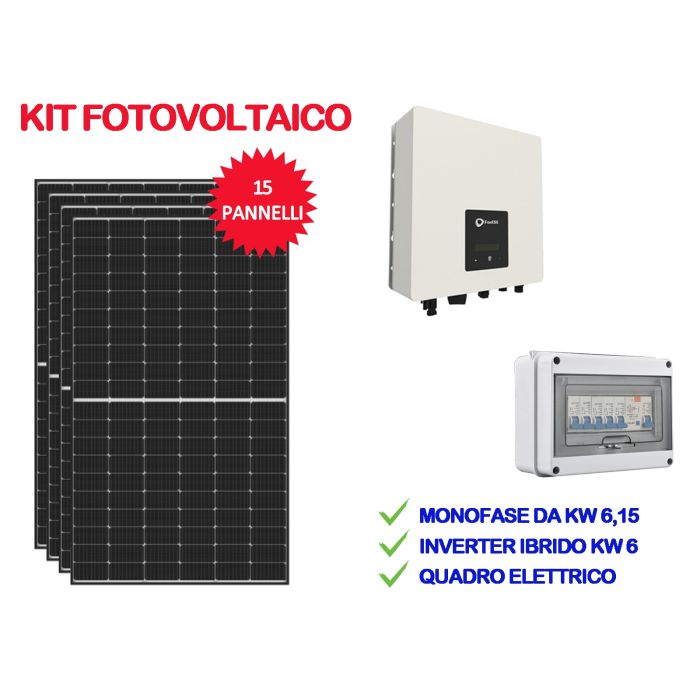Kit Fotovoltaico Monofase 6,15 Kw Pannello Solare Inverter Quadro Elettrico