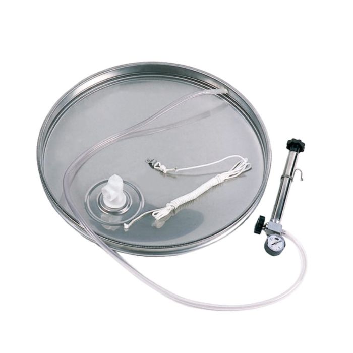 Il kit comprende: galleggiante in acciaio inox, pompa con manometro e tubo per l’aria, camera d’aria per uso alimentare, fune di recupero e valvola di sfiato in plastica.