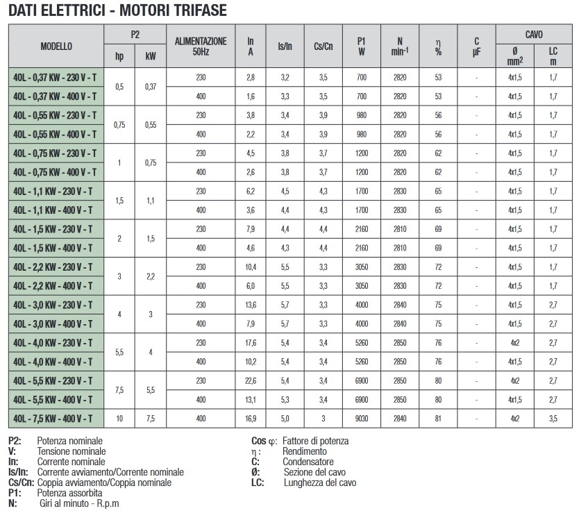 Motore Fluidi Sommerso Elettrico 4" Asincrono A 2 Poli DAB 4OL - 1,5Kw - 400 V - T