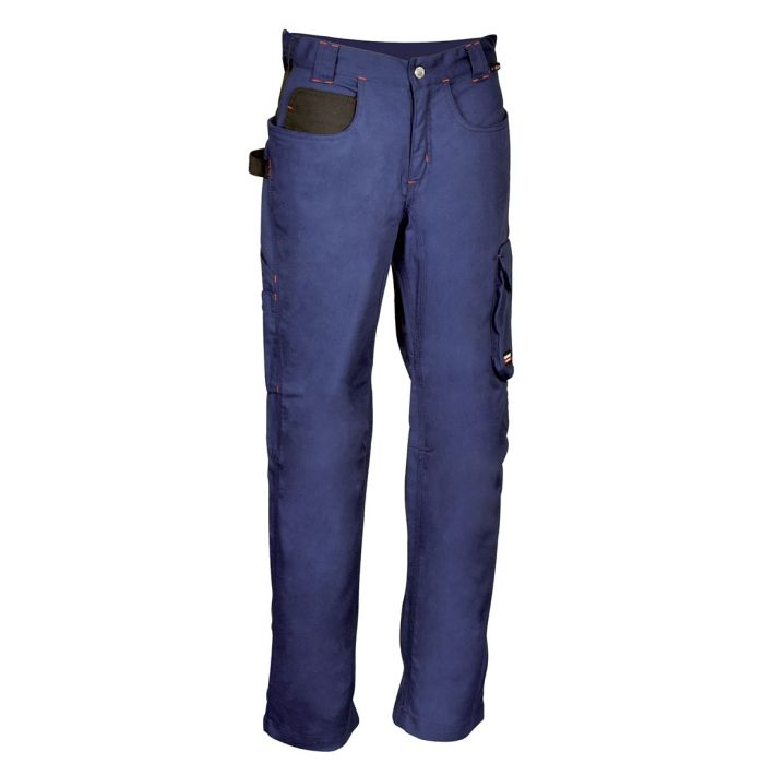 DESCRIZIONE: ampie tasche anteriori, cavallo rinforzato, doppia tasca posteriore di cui una con pattina, inserto portapenne, passante portamartello, taglio ergonomico di gambe e ginocchia, tasca laterale, tasca porta monete, tasca portametro, vita regolabile, zip YKK®