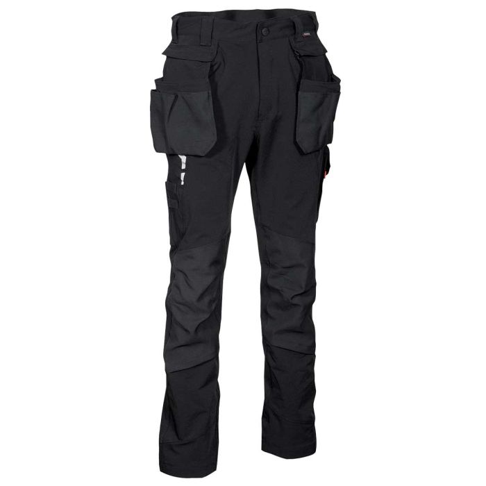 DESCRIZIONE: 2 ampie tasche anteriori, doppia tasca posteriore chiusa con velcro, inserti reflex, passante portamartello, taglio ergonomico di gambe e ginocchia, tasca laterale con doppia apertura (chiusa con velcro e con zip) , tasca portametro, tasche esterne porta chiodi in nylon, staccabili tramite zip, tasche per ginocchiere in nylon con posizione regolabile, tessuto elasticizzato