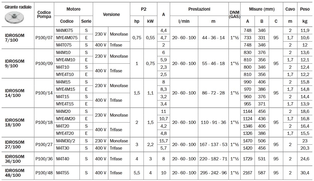 Descrizione / Parte Elettropompa Sommersa BBC IDROSOM 9/100 Multigirante 4"