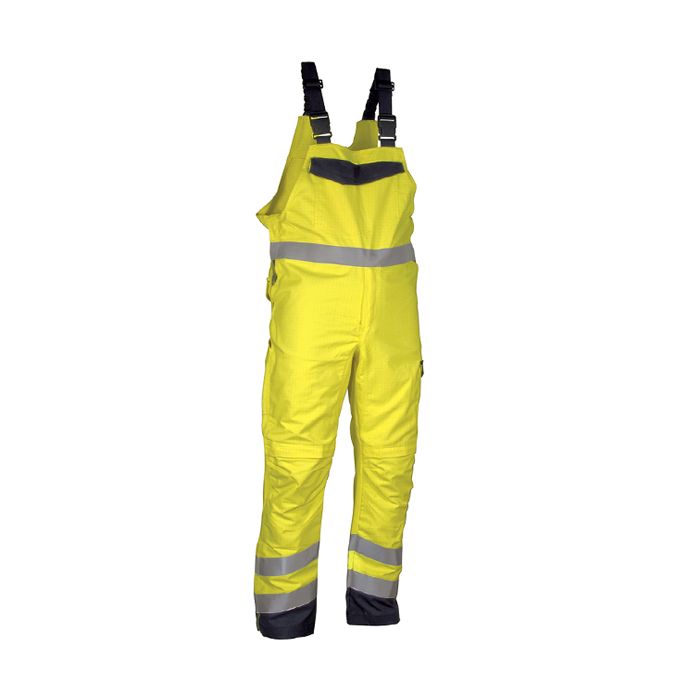 DESCRIZIONE: 2 ampie tasche sotto la vita, 2 tasche portaginocchiere regolabili, 2 tasche posteriori, apertura laterale regolabile con bottoni in plastica, bande reflex fiammaritardante 3M™ SCOTCHLITE™ Reflective Material - 8935 Silver Fabric, bretelle regolabili, consigliato in ambienti ATEX, pittogrammi delle norme ricamati sulla tasca laterale, tasca sul petto con pattina chiusa con velcro, una tasca laterale