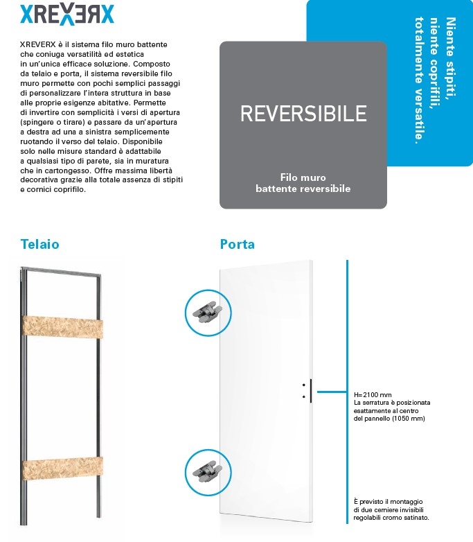 Descrizione / Porta Interno ERMETIKA xREVERx Filo Muro H.210 Cm Reversibile Con Telaio