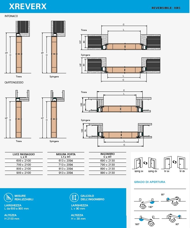 - Filo Muro e Reversibile: Grazie alla sua caratteristica filo muro e reversibile, questa porta si integra senza soluzione di continuità con le pareti, offrendo un aspetto pulito e senza ingombri.