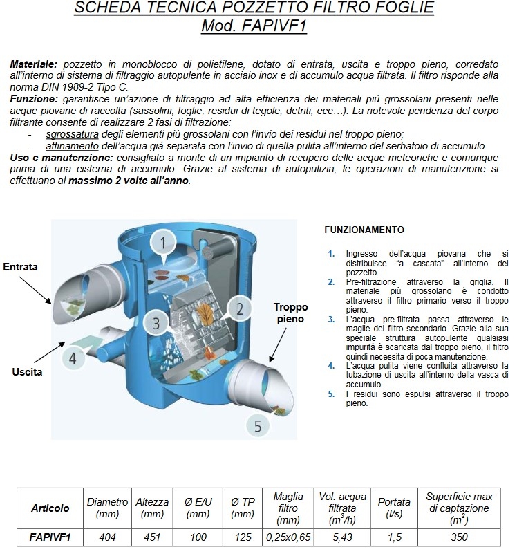 La notevole pendenza del corpo filtrante consente di realizzare 2 fasi di filtrazione: