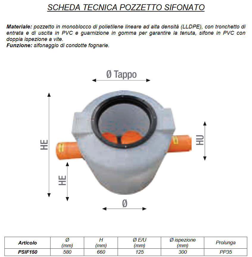 Descrizione / Pozzetto Sifonato ROTOTEC PSIF 150 Impianti Condotte Fognarie