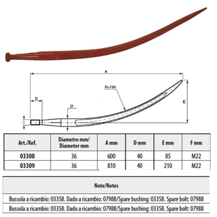 Descrizione / Punte Curvata per Forca Rotoballe Letame dim 36 A 600-810 SHW Alta Qualità