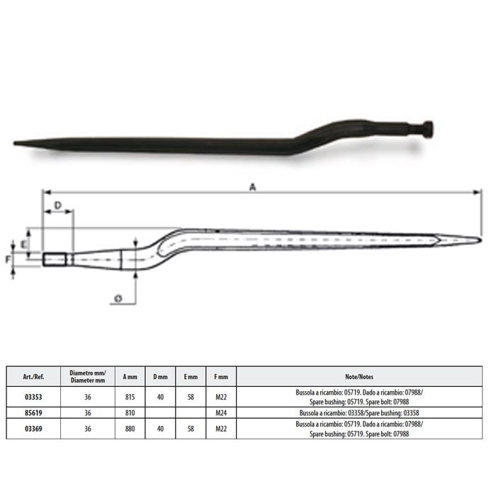 Descrizione / Punte Disassate per Forca Rotoballe Letame dim 36 SHW Alta Qualità