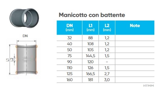 Raccordo Manicotto D. 110 mm Con Battente