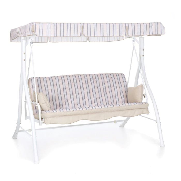 Dondolo Da Giardino ZANZIBAR In Ferro 3 Posti Con Schienale Reclinabile Colore Bianco