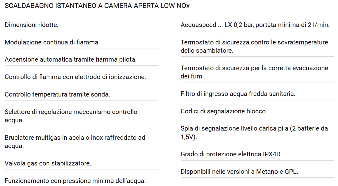 Scaldabagno istantaneo a camera aperta LOW NOx