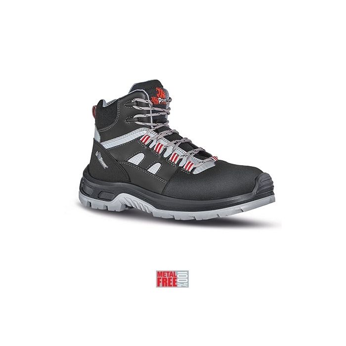 Scarpe antinfortunistiche polacchi totalmente "no metal", comode U-Power della linea Concept Plus, con tomaia in pelle pieno fiore con inserti Matrix, idrorepellente, puntale Composite, antiperforazione, antiscivolo e suola PU/PU, S3 SRC