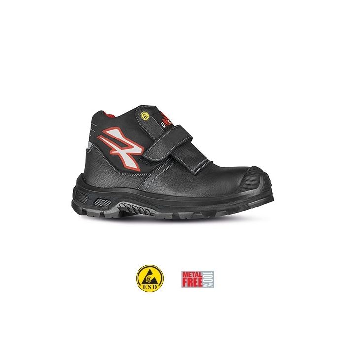 Scarpe antinfortunistiche alte, leggere e comode U-Power della linea Red Industry, con tomaia in Pelle grana mina con inserto in microfibra, idrorepellente, con allacciatura velcro, puntale AirToe Composite, antiperforazione e suola PU/PU, antiabrasione, antiolio, antiscivolo e antistatico. Coprisottopiede Antifatica WOW2. S3 CI SRC ESD