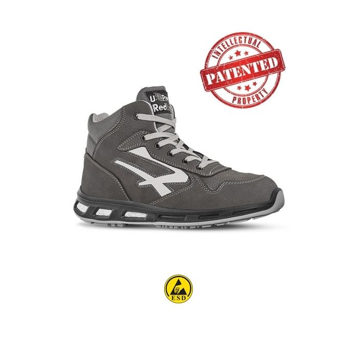Scarpe antinfortunistiche alte, leggere e comode U-Power della linea Red Lion, con tomaia in pelle nabuk naturale bottalato, traspiranti, idrorepellente, puntale in alluminio, antiperforazione, antiscivolo e suola PU/PU, infinergy S3 SRC CI ESD