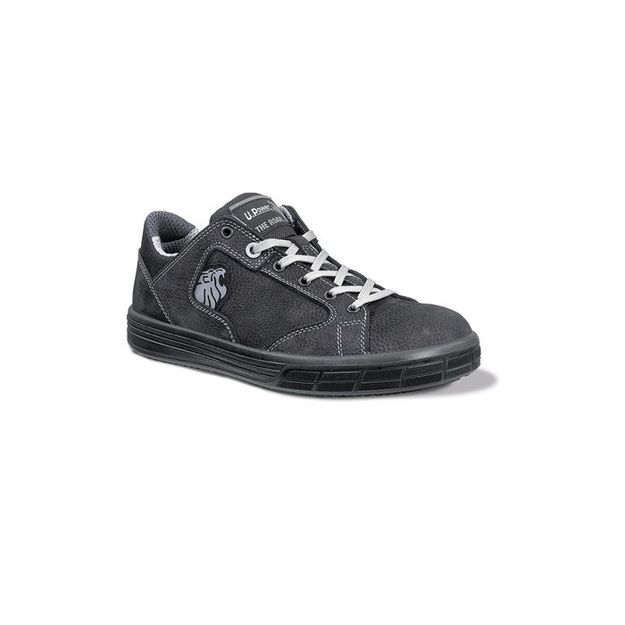 Scarpe antinfortunistiche basse, leggere e comode U-Power della linea The Roar, con tomaia in pelle Nabuk naturale bottalato, idrorepellente, puntale in alluminio, antiperforazione, antiscivolo e suola PU/PU LIGHT GRIP, S3 SRC