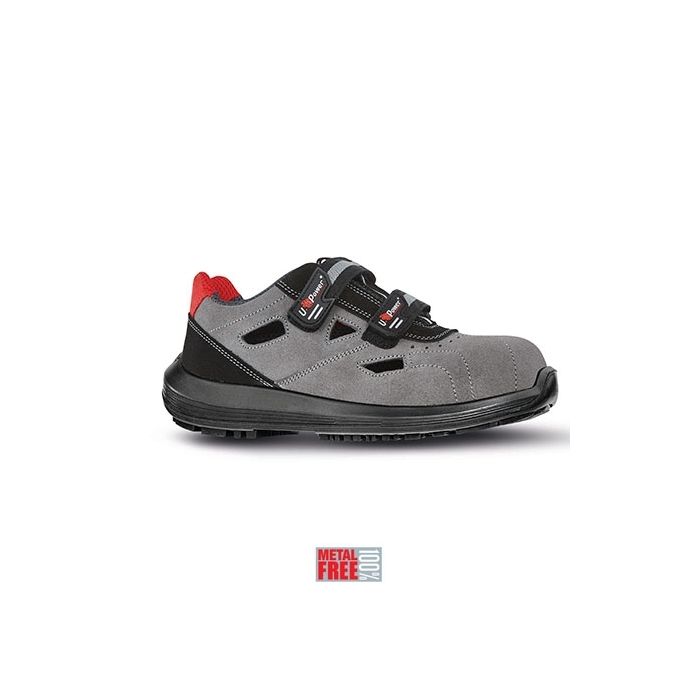 Scarpe antinfortunistiche basse totalmente "metal free", comode e leggere U-Power della linea Rock&Roll, con tomaia in morbida pelle scamosciata, inserti in Mesh traspirante, puntale AirToe Composite, antiperforazione, antiscivolo e suola PU/PU, S1P SRC
