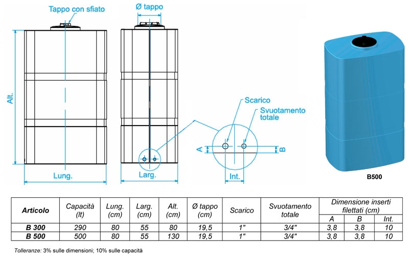 - Serbatoi da utilizzare esclusivamente per l’esterno. Non interrare;