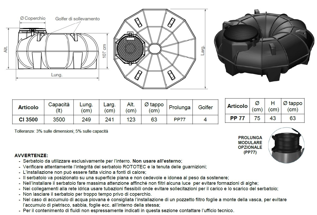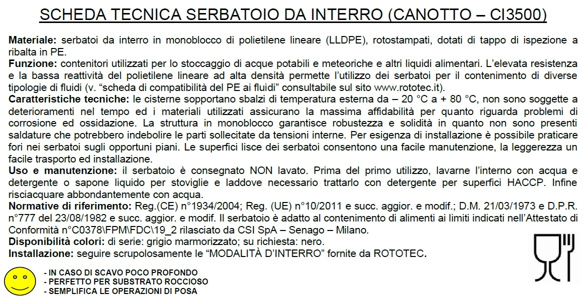 Descrizione / Serbatoio Acqua da Interro Corrugati ROTOTEC CANOTTO CI3500 Litri 3500