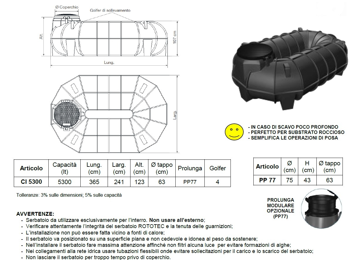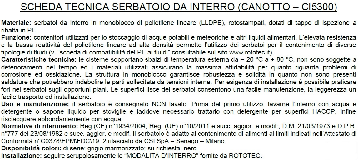 Descrizione / Serbatoio Acqua da Interro Corrugati ROTOTEC CANOTTO CI5300 Litri 5300