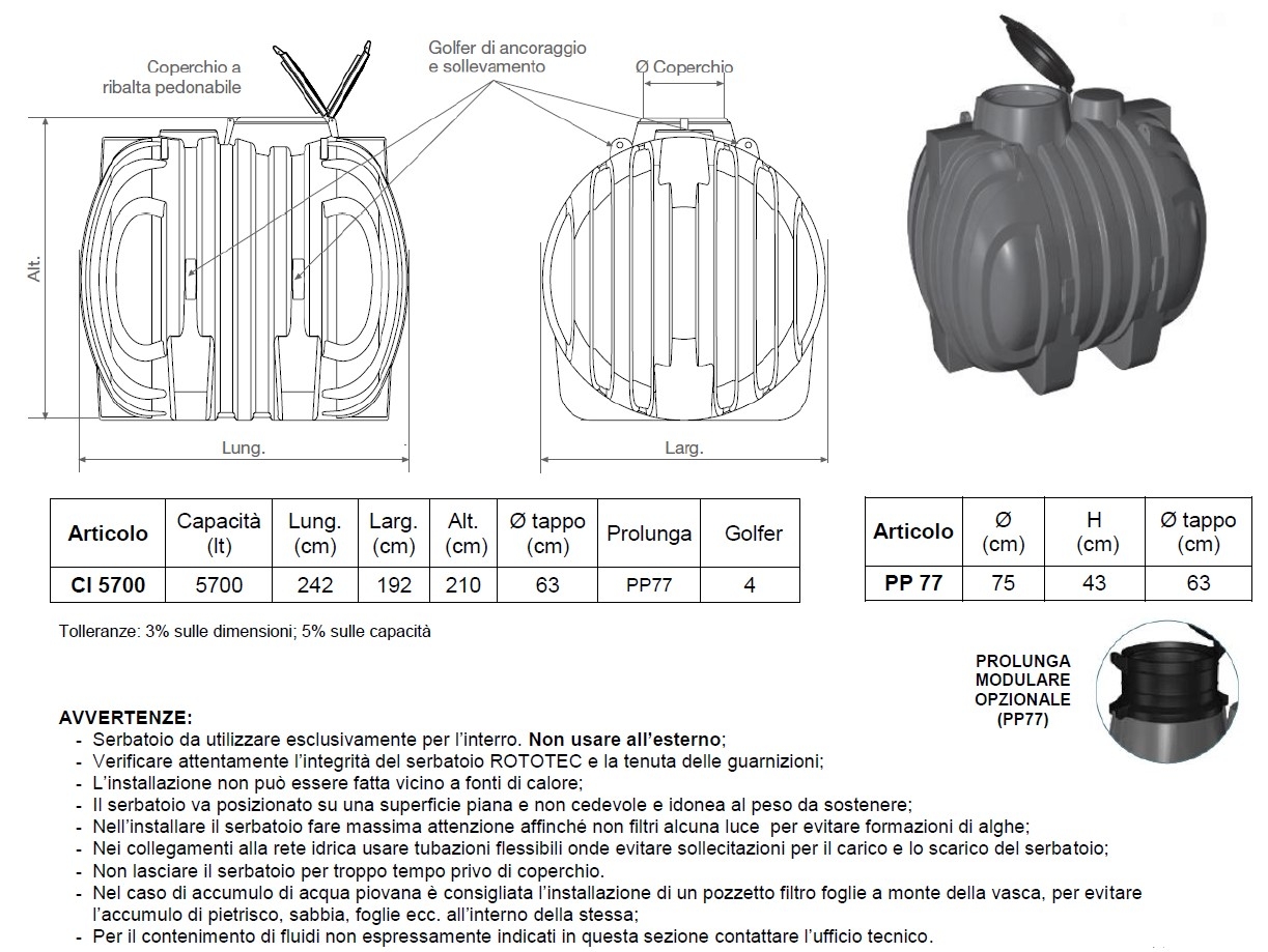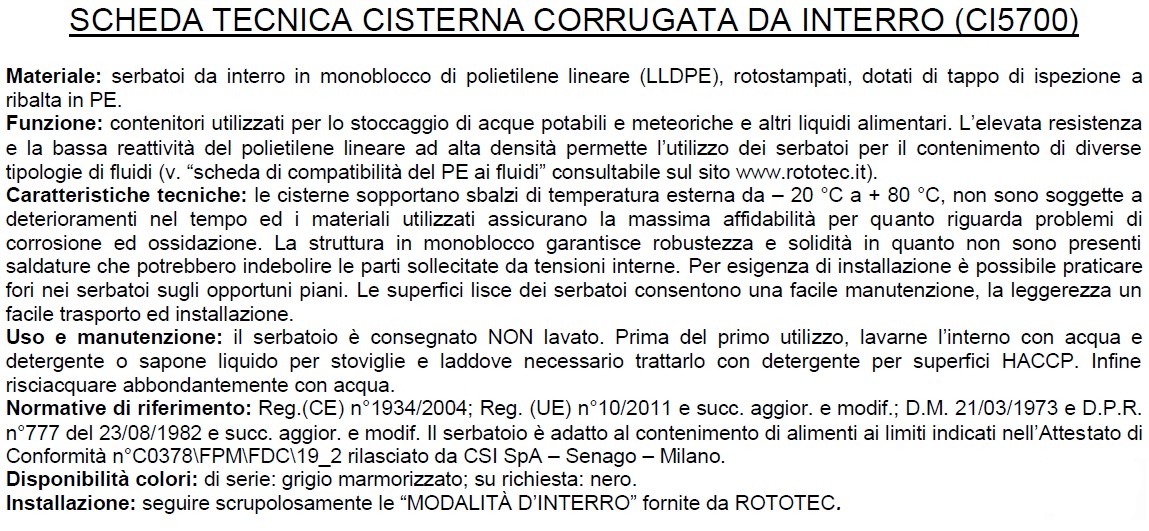 Descrizione / Serbatoio Acqua da Interro Corrugati ROTOTEC CISTERNA CI5700 Litri 5700