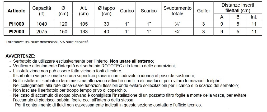 Serbatoio Acqua da Interro Lisci ROTOTEC PANETTONE PI2000 Litri 2075
