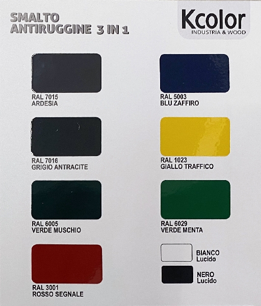 Pittura Per Ferro Smalto Antiruggine Lucido 3in1 KCOLOR K TRE 2,5 lt Vari Colori